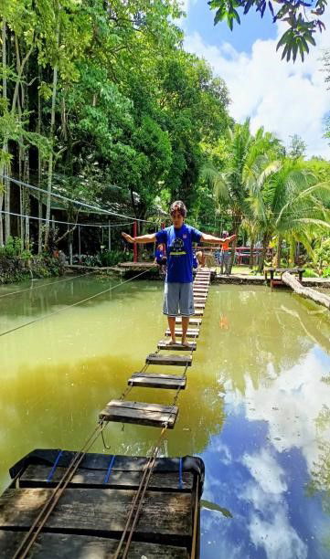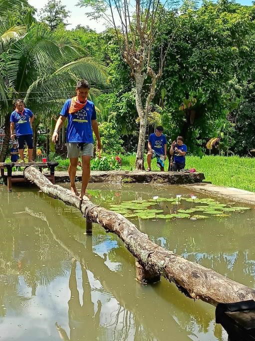 Balancing Log This activity has the same objective with Tight rope and balancing wheel. They need to cross the log and avoid falling to the lagoon.